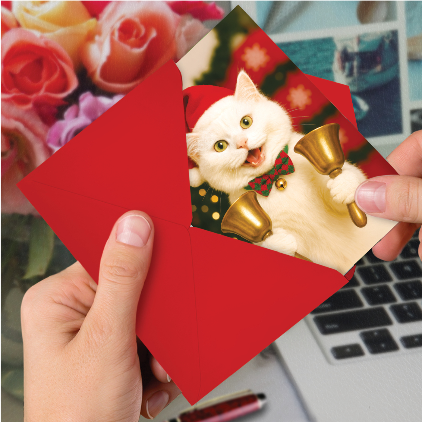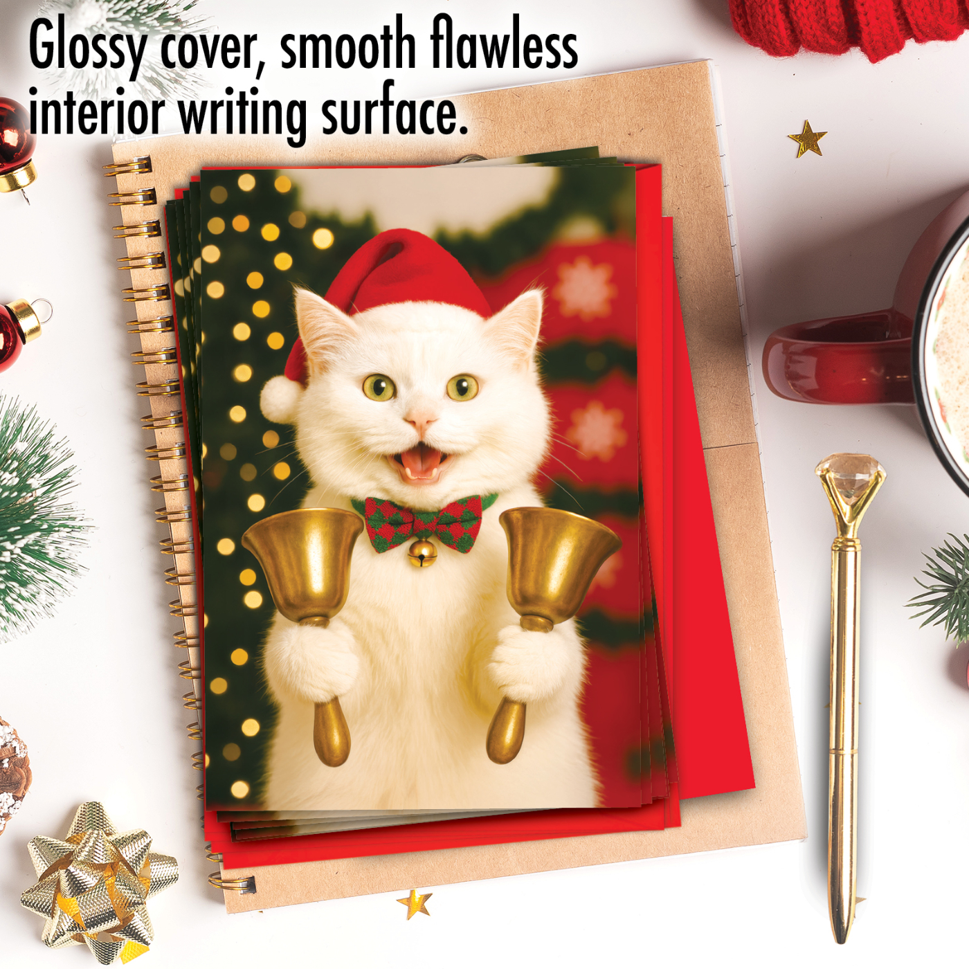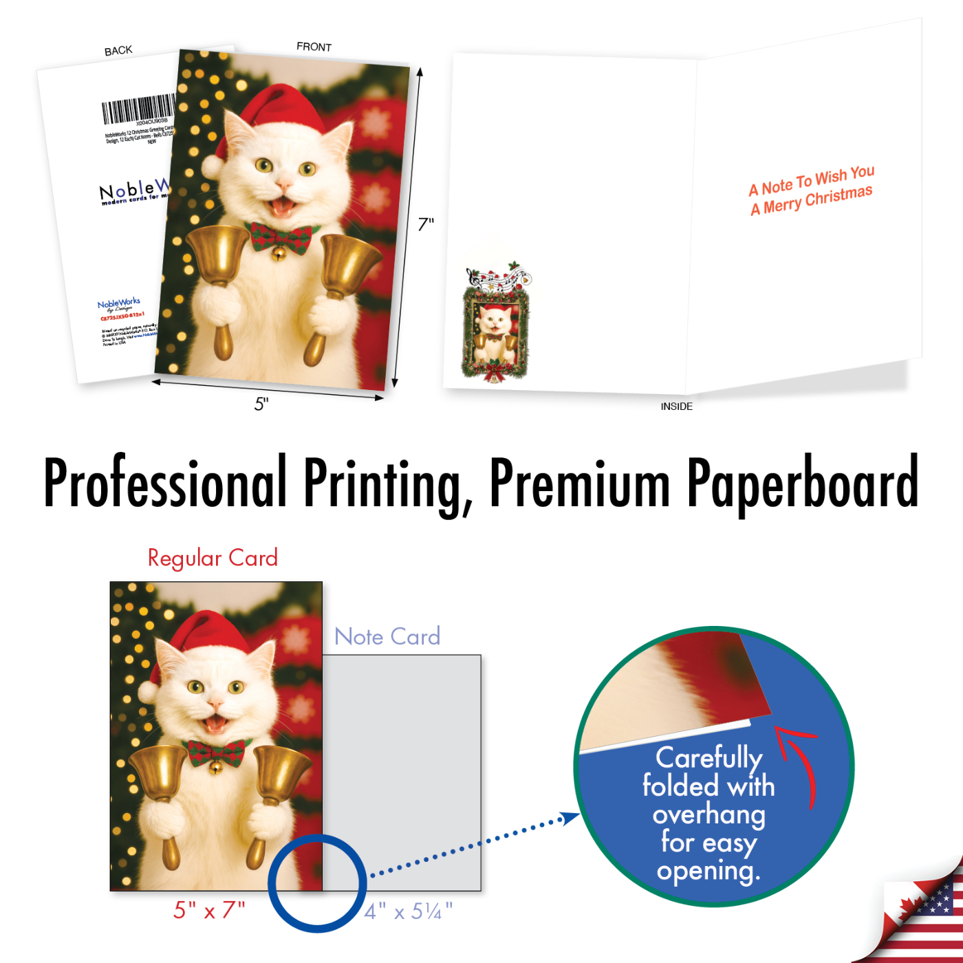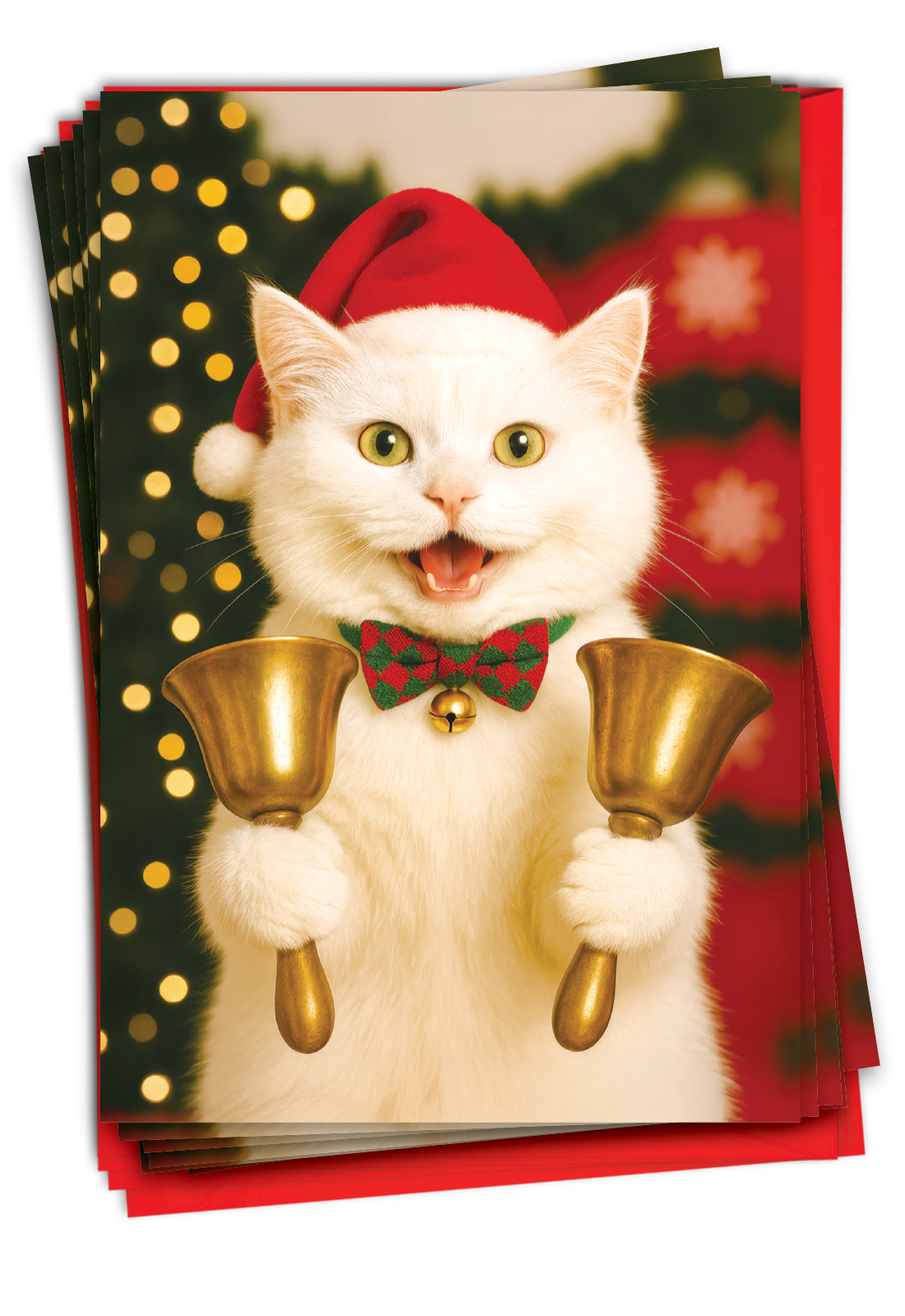Cat Notes - Bells - Beautiful Merry Christmas Box of 12 Cards, Wholesale