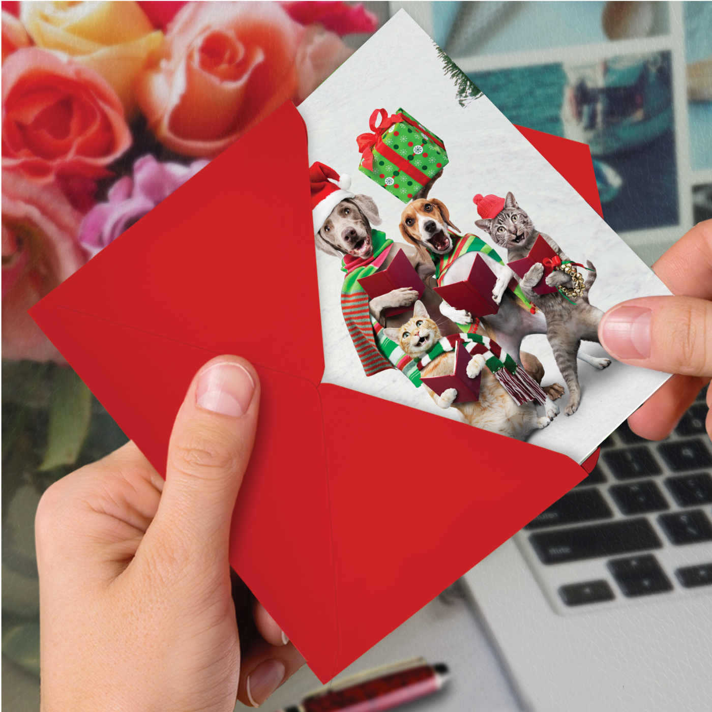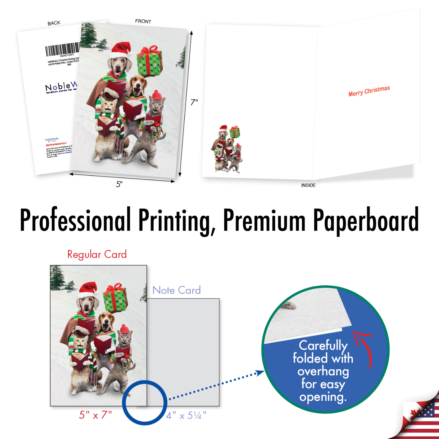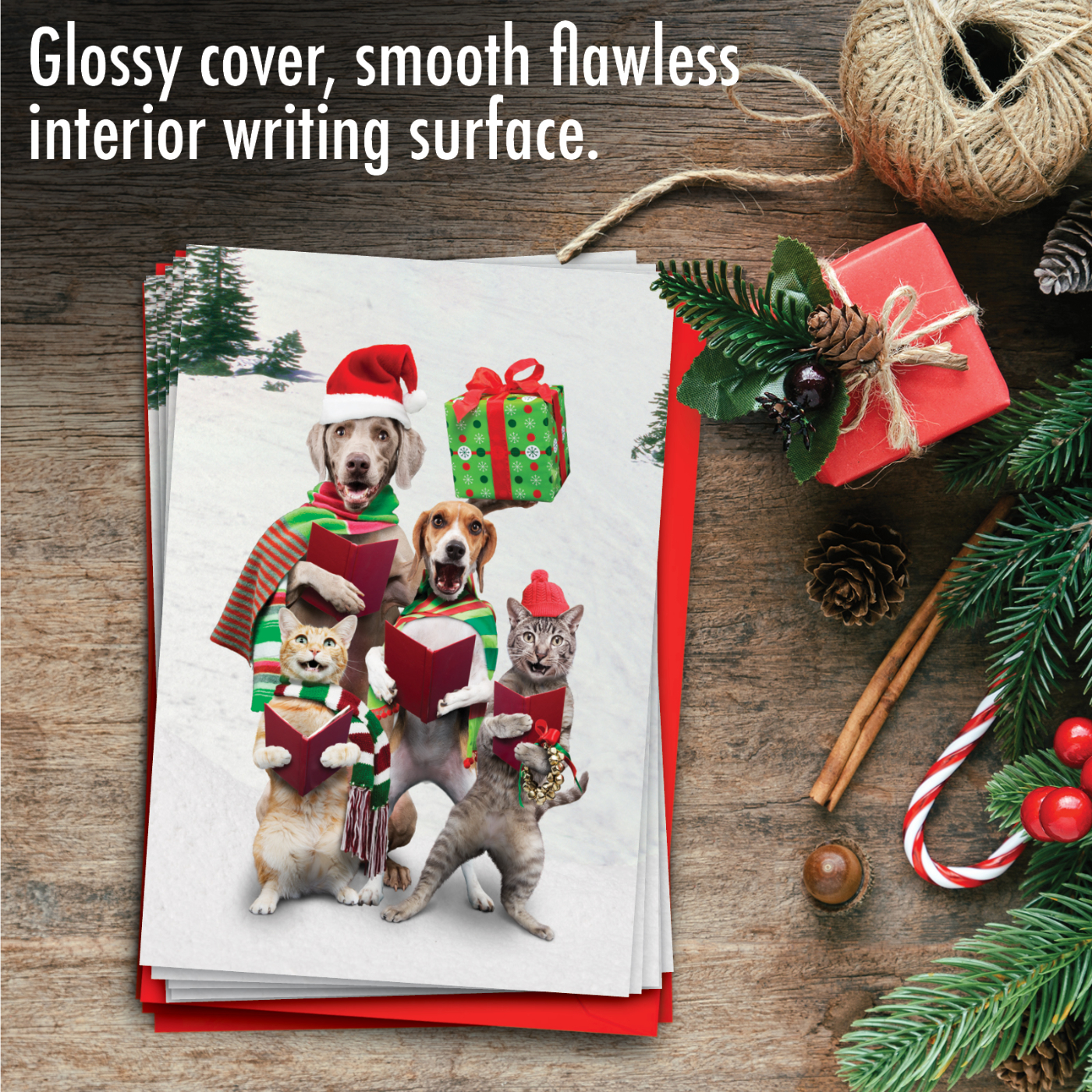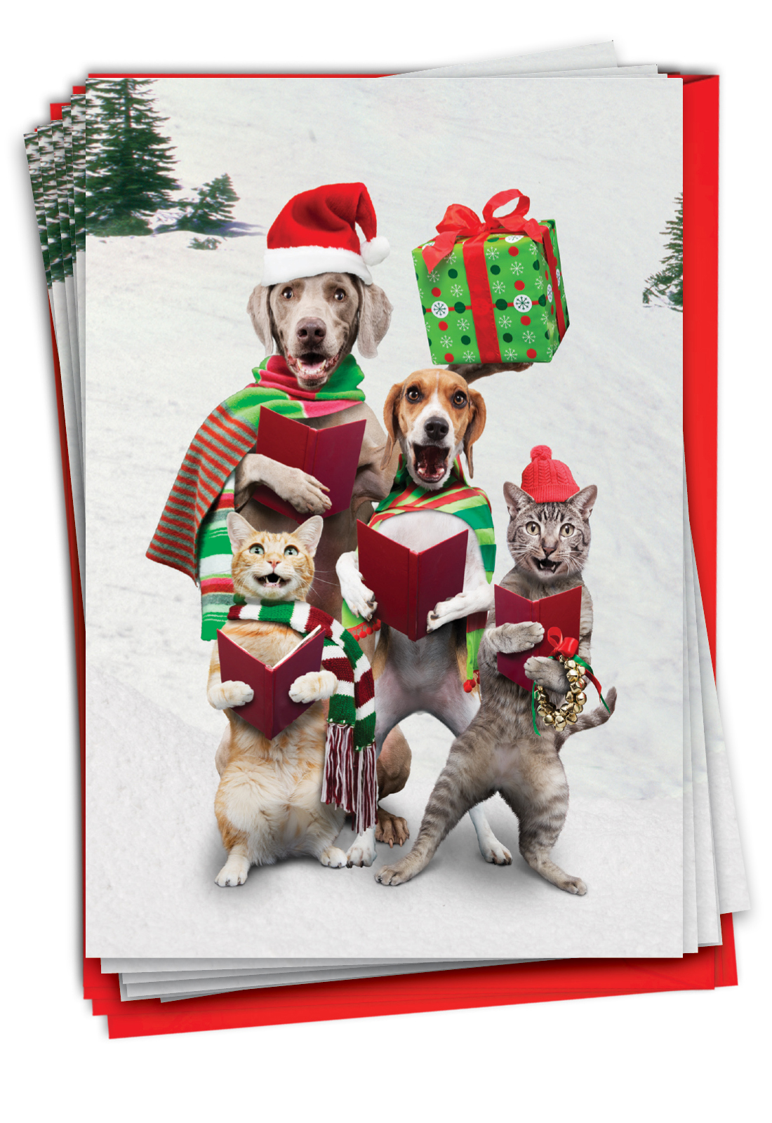 Pet Holiday Antics - Carolers - Artful Merry Christmas Box of 12 Cards, Wholesale