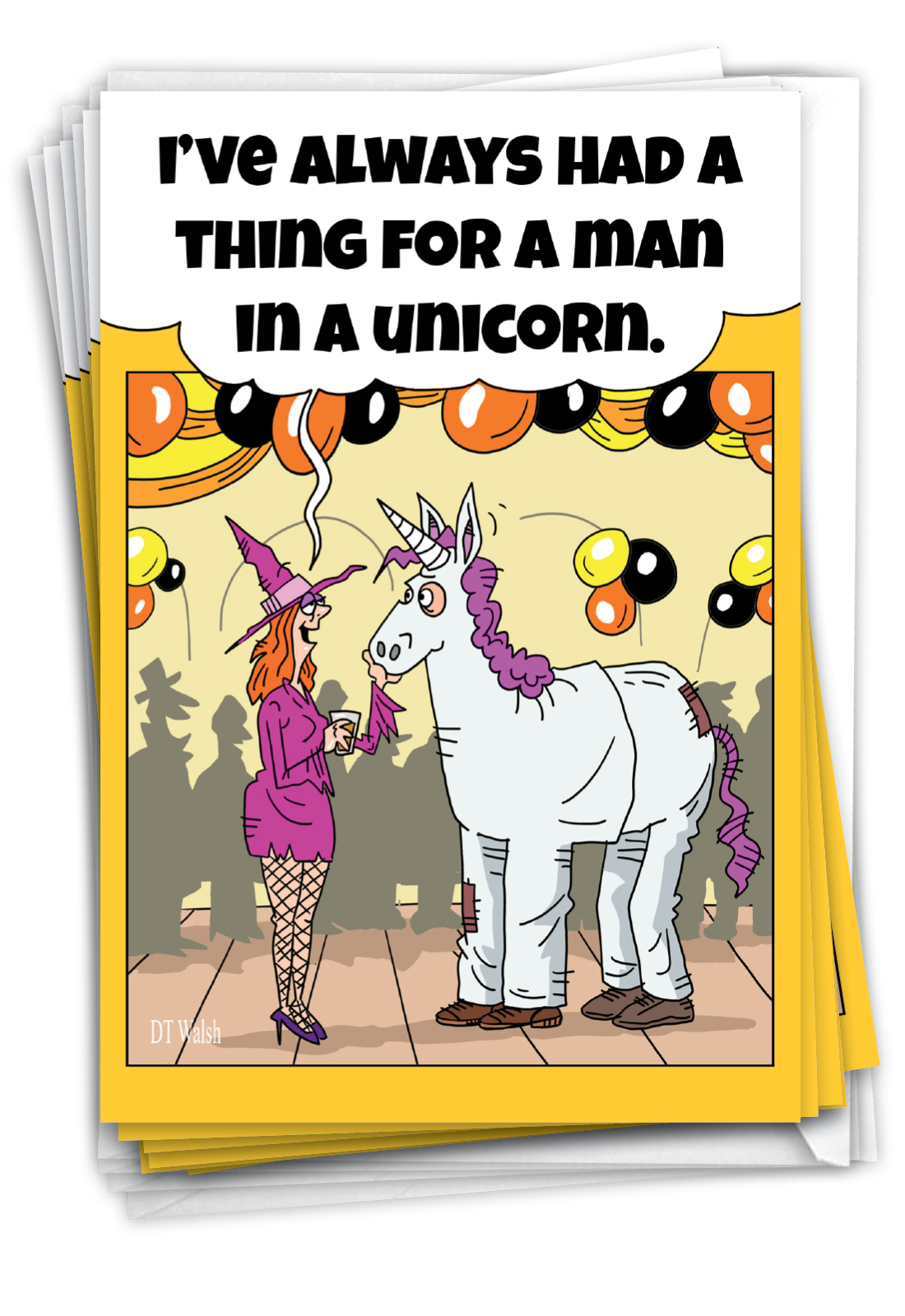 Man In Unicorn - Humorous Halloween Box of 12 Cards, Wholesale