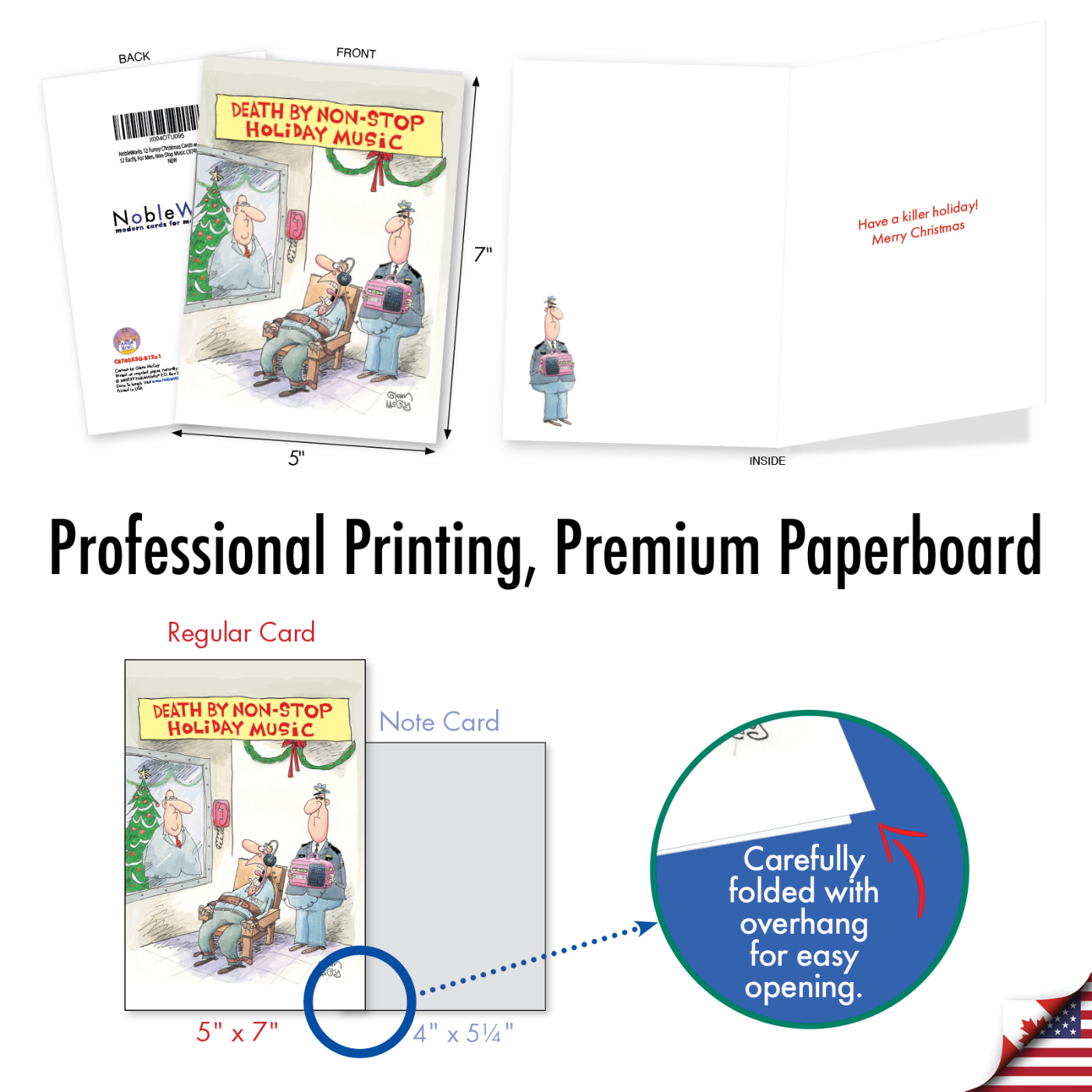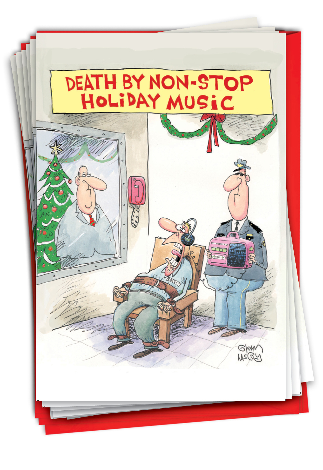 Non-Stop Music - Humorous Merry Christmas Box of 12 Cards, Wholesale