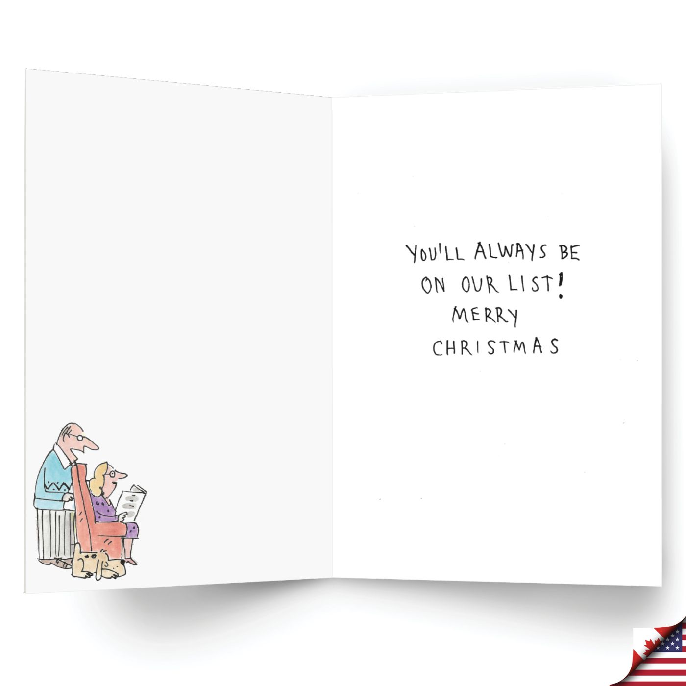 It says: "Final Notice - You will be dropped from our Christmas card list unless you send us one immediately,"