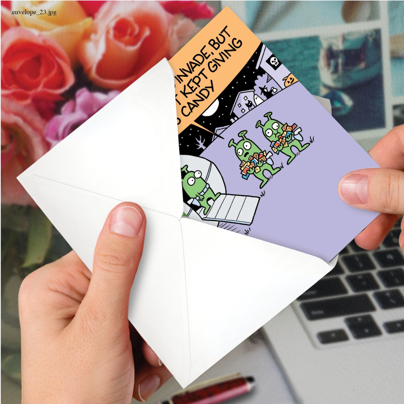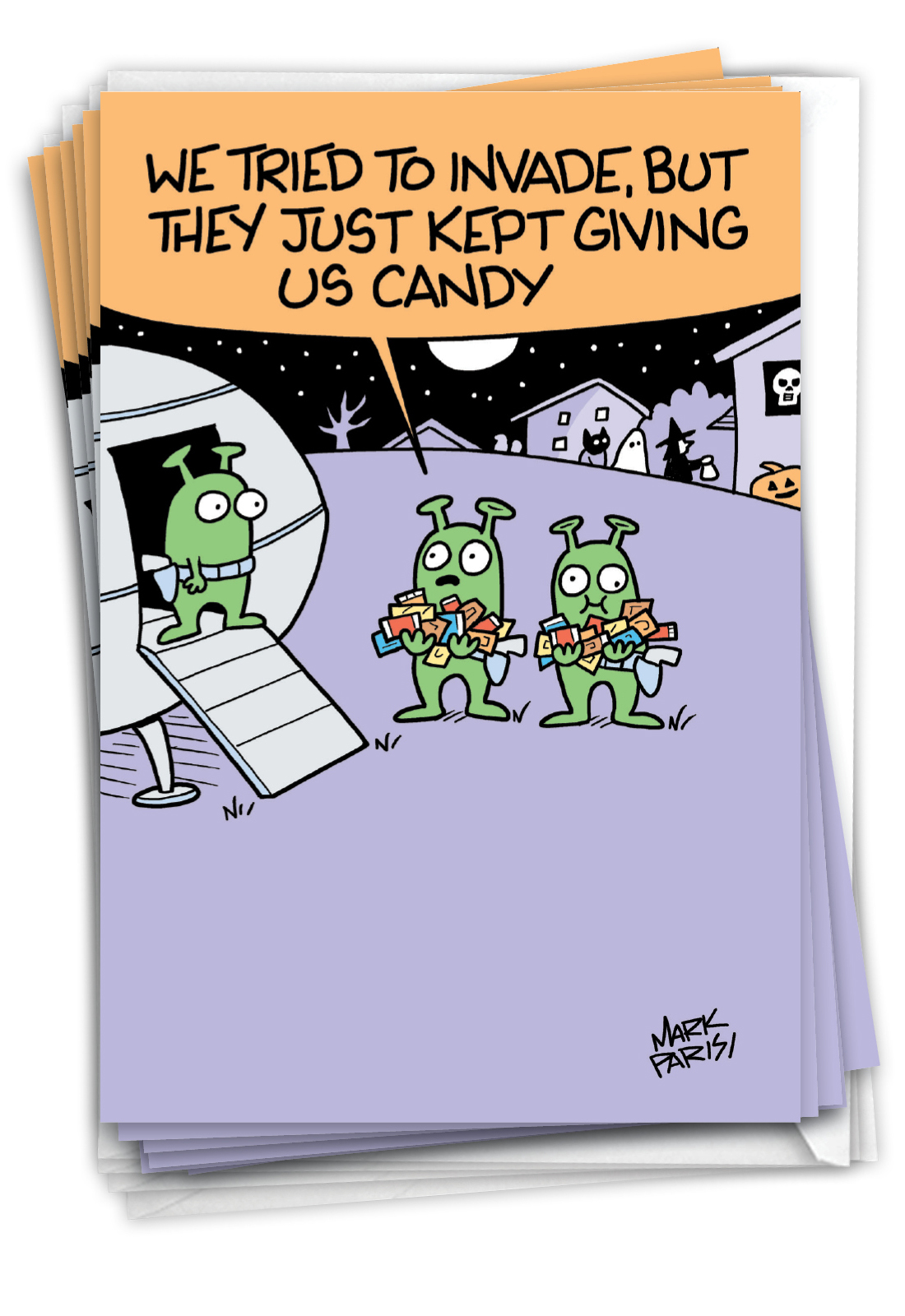 Alien Trick-Or-Treaters - Humorous Halloween Box of 12 Cards, Wholesale