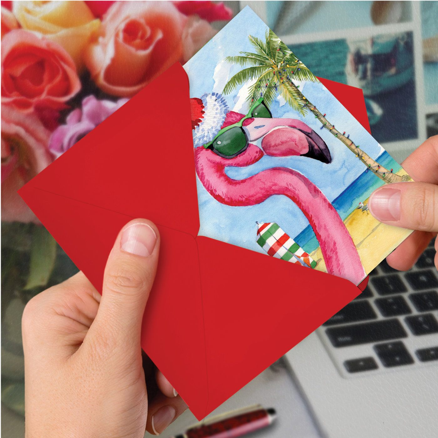 Holiday Beach Animals-Flamingo - Creative Merry Christmas Box of 12 Cards, Wholesale