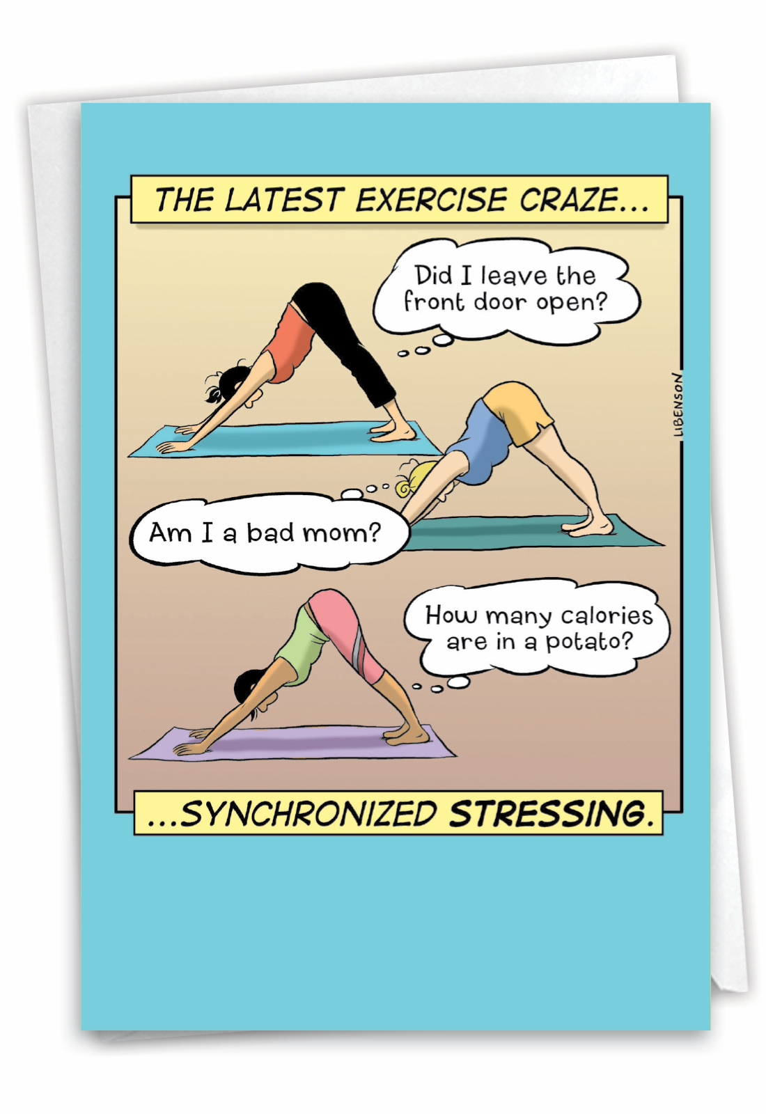 The latest exercise craze... ...synchronized stressing. Did I leave the front door open? Am I a bad mom? How many calories are in a potato?