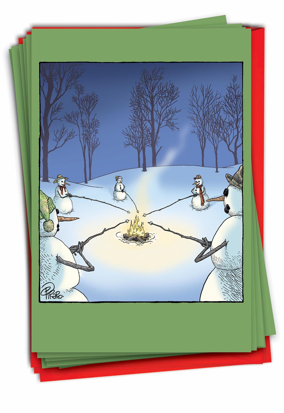 Snowman Marshmallows - Hilarious Merry Christmas Box of 12 Cards, Wholesale