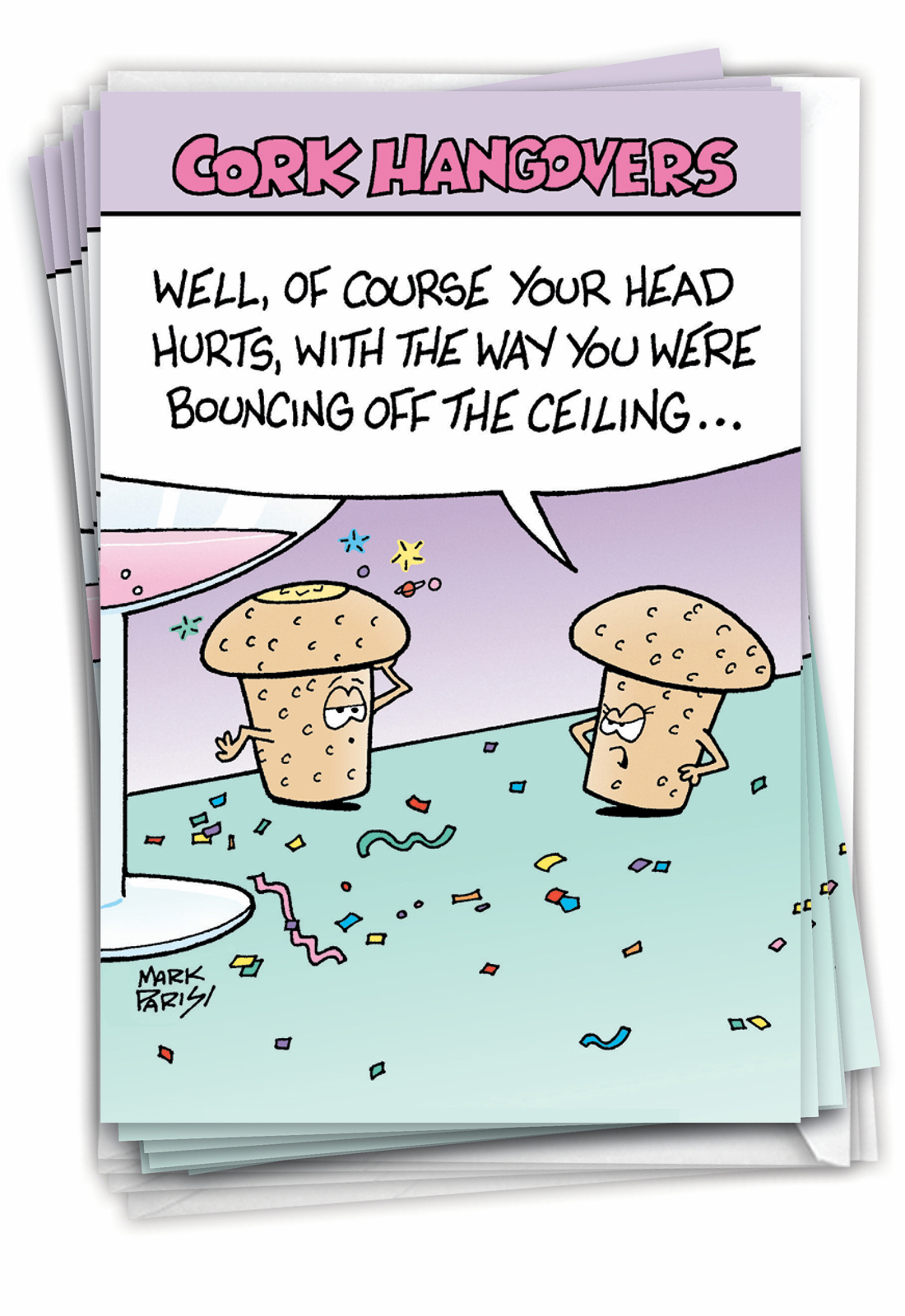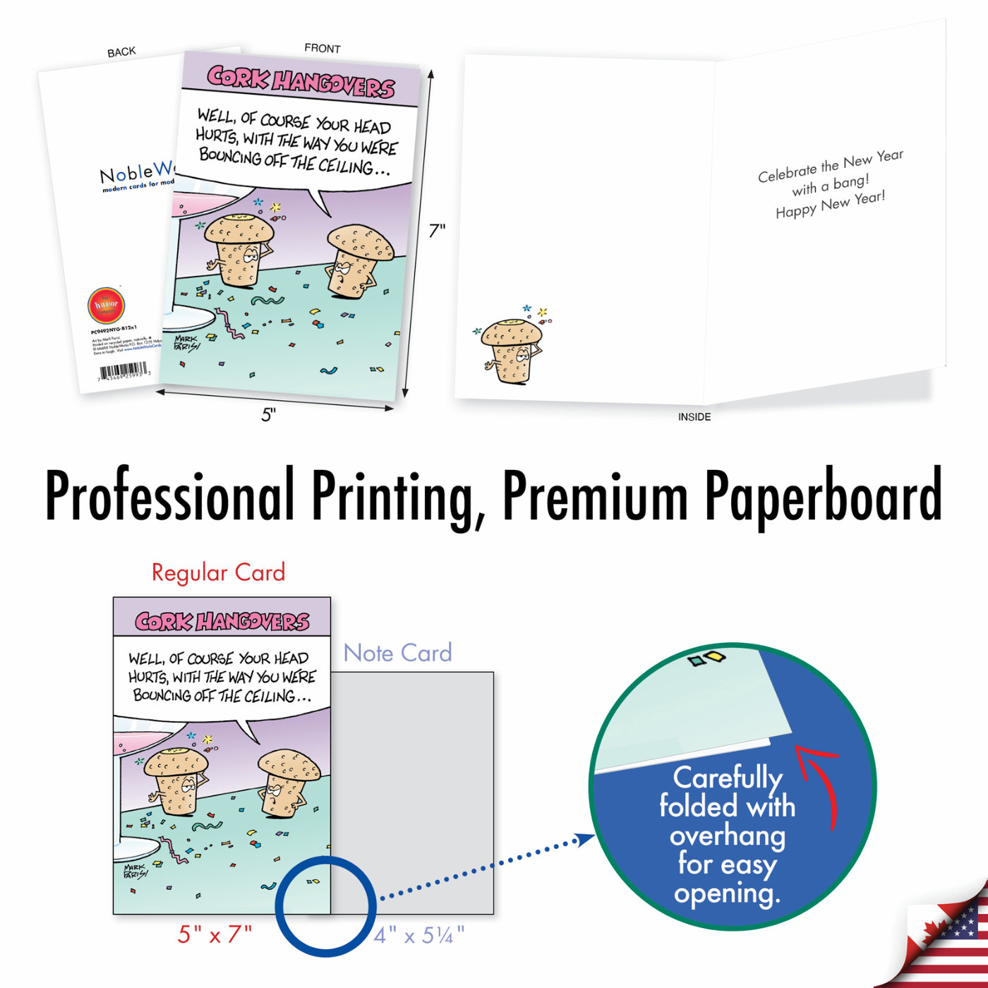 Cork Hangovers - Hysterical New Year Box of 12 Cards, Wholesale