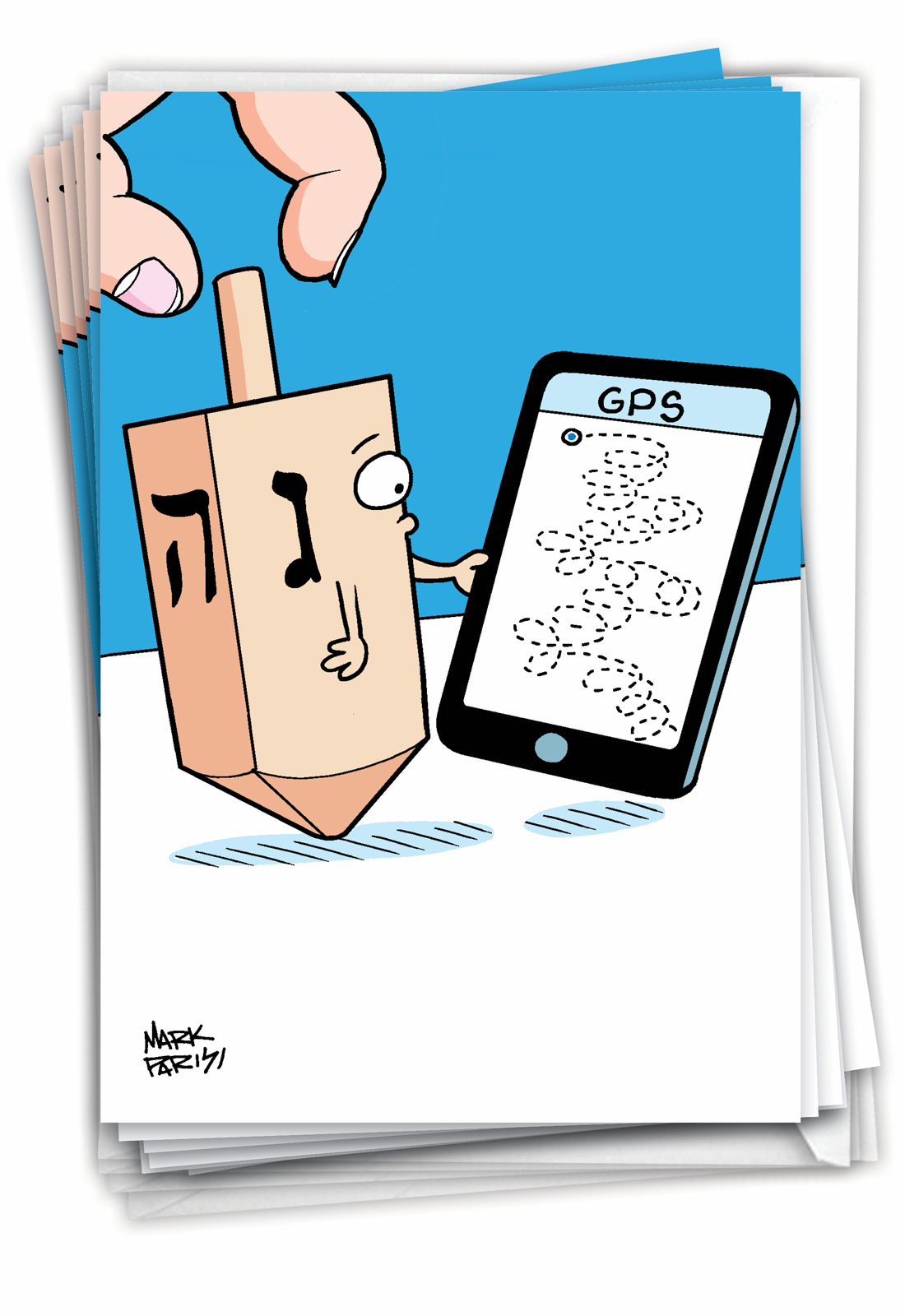 Dreidel GPS - Hilarious Chanukah Box of 12 Cards, Wholesale