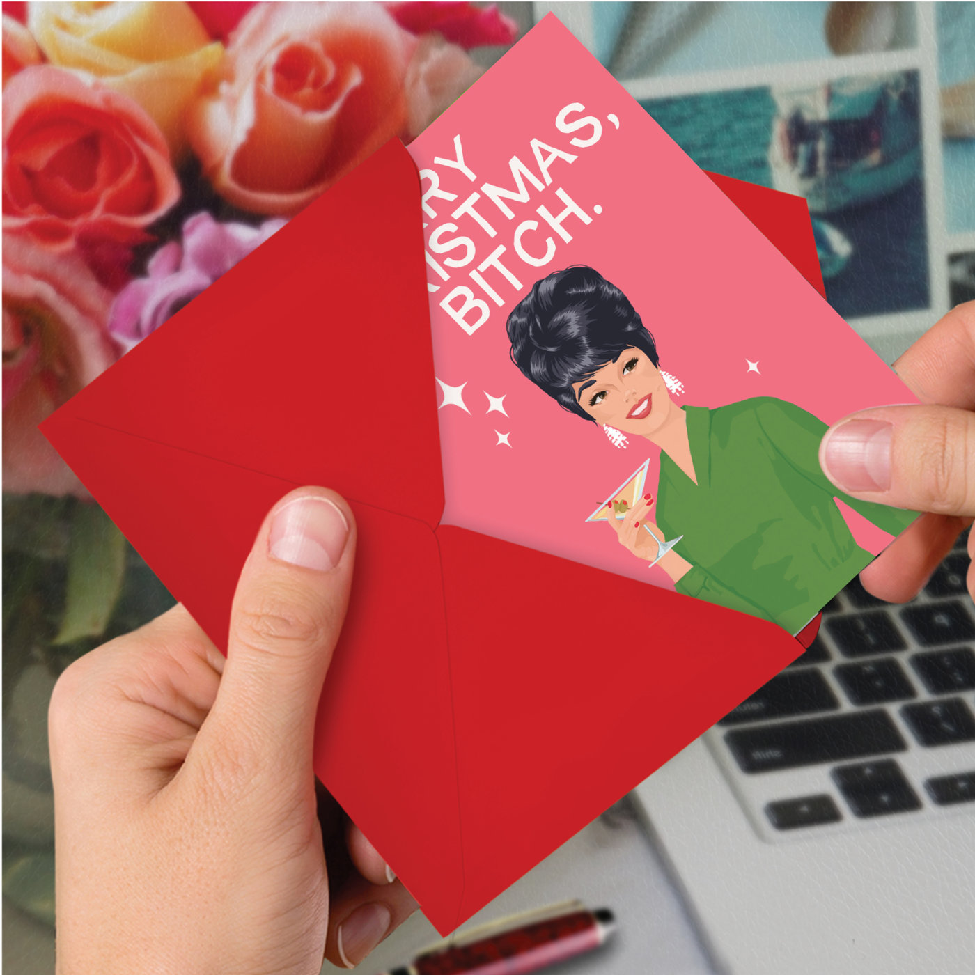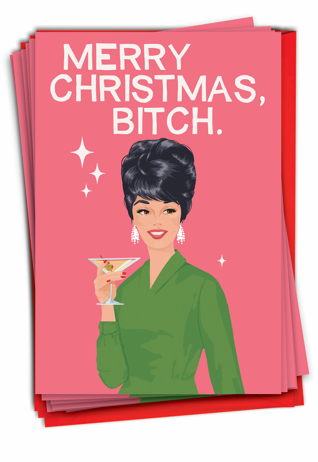Merry Martini - Funny Merry Christmas Box of 12 Cards, Wholesale