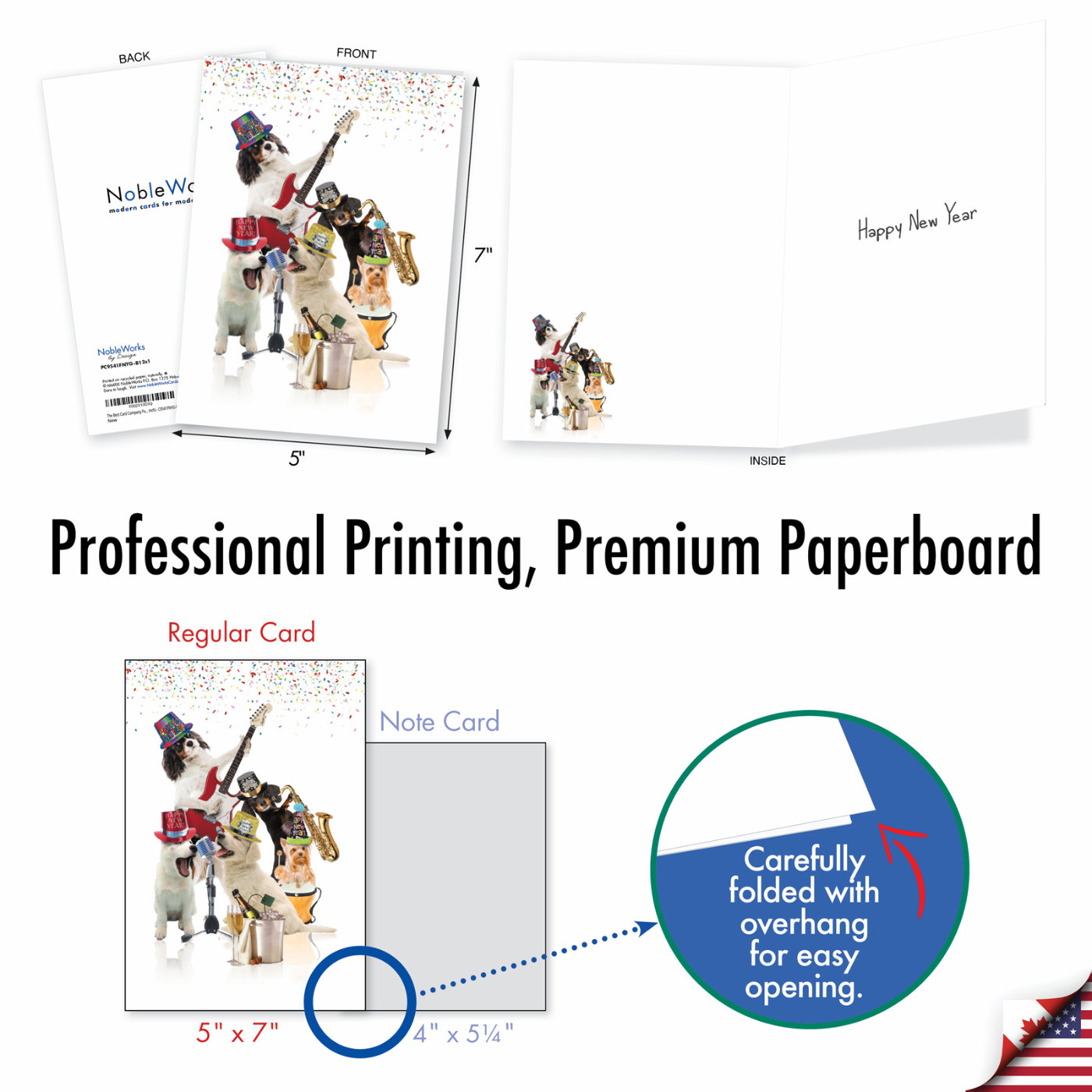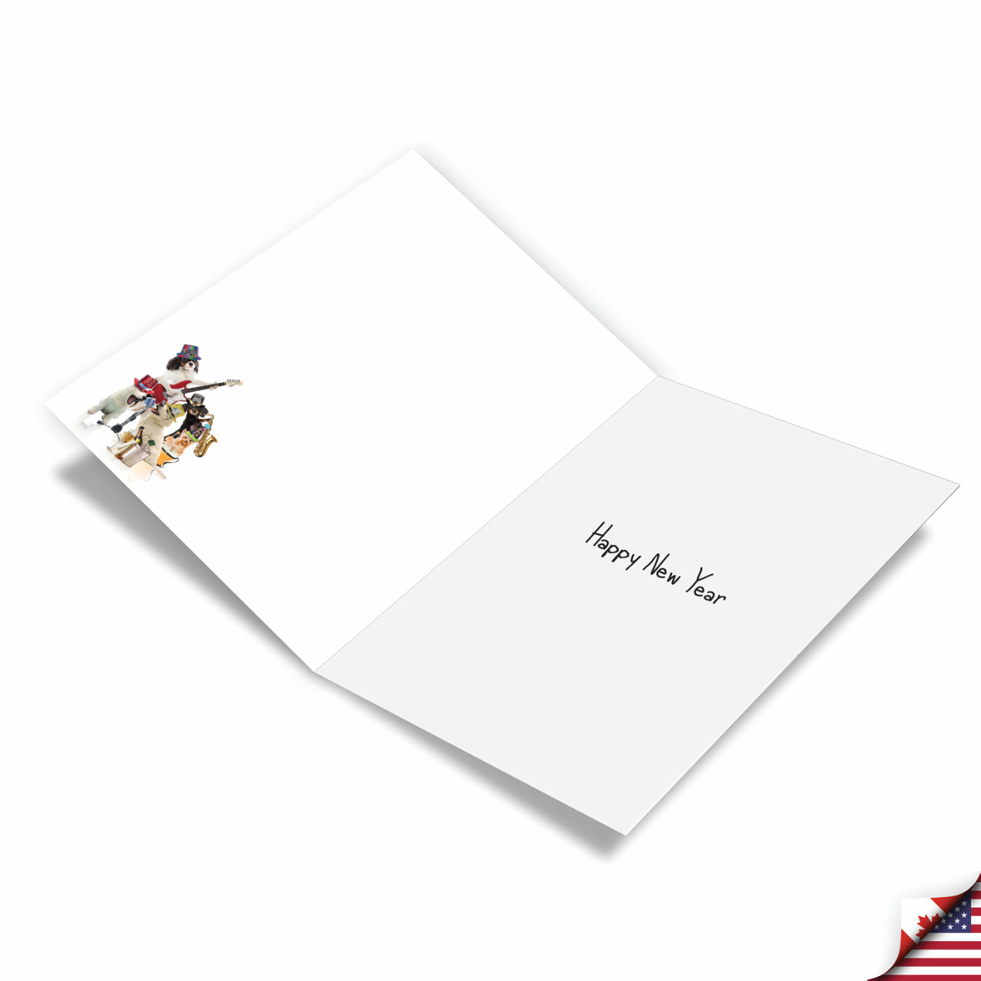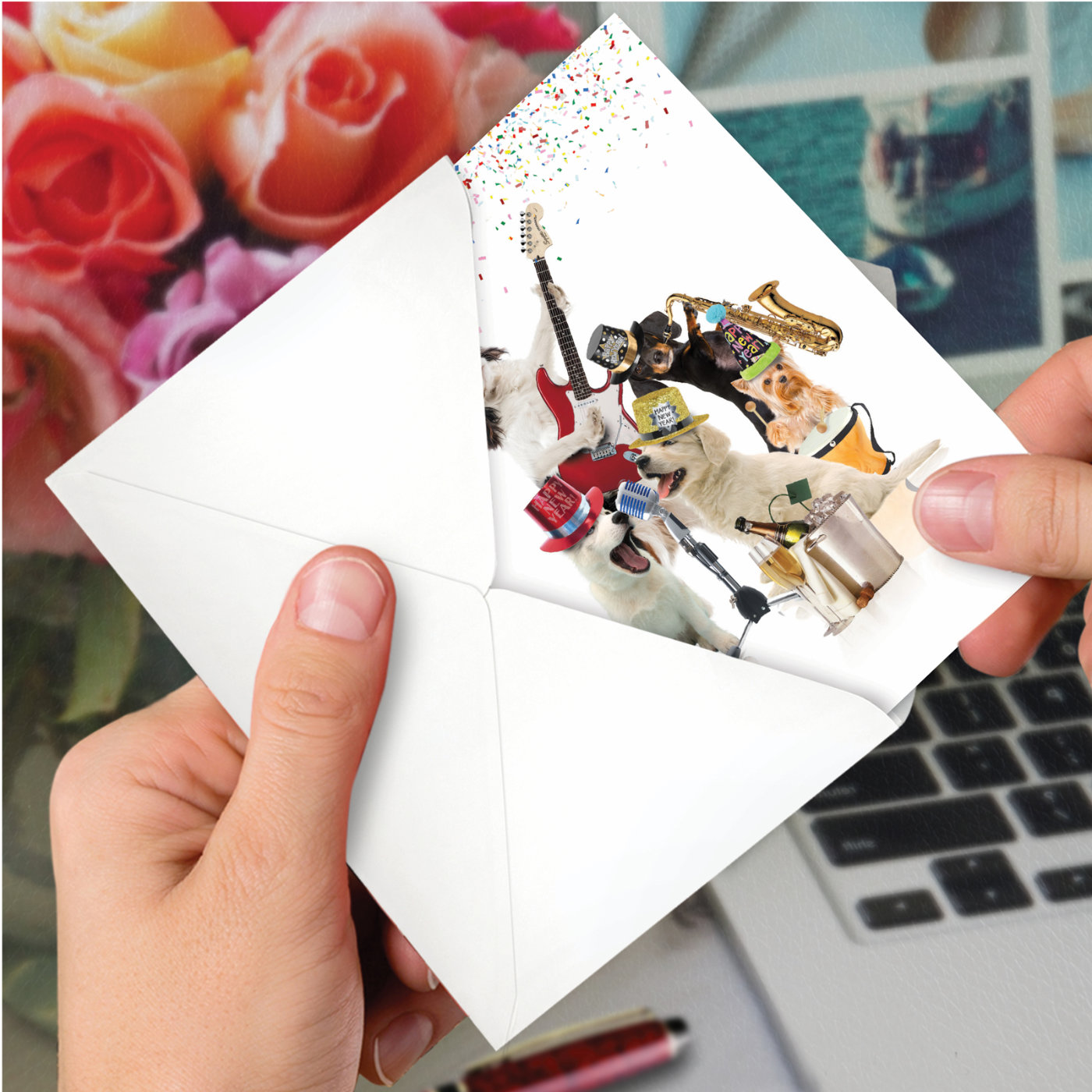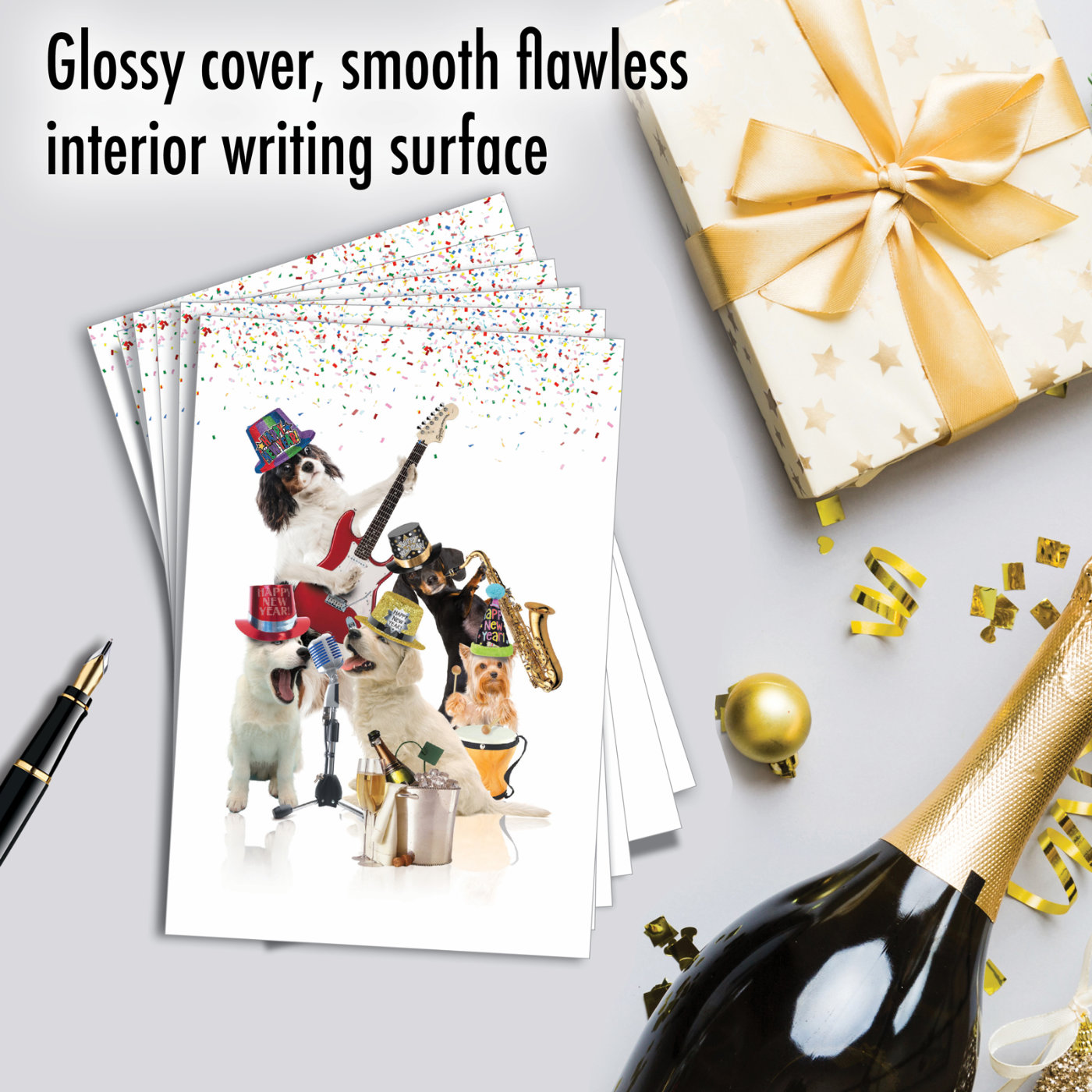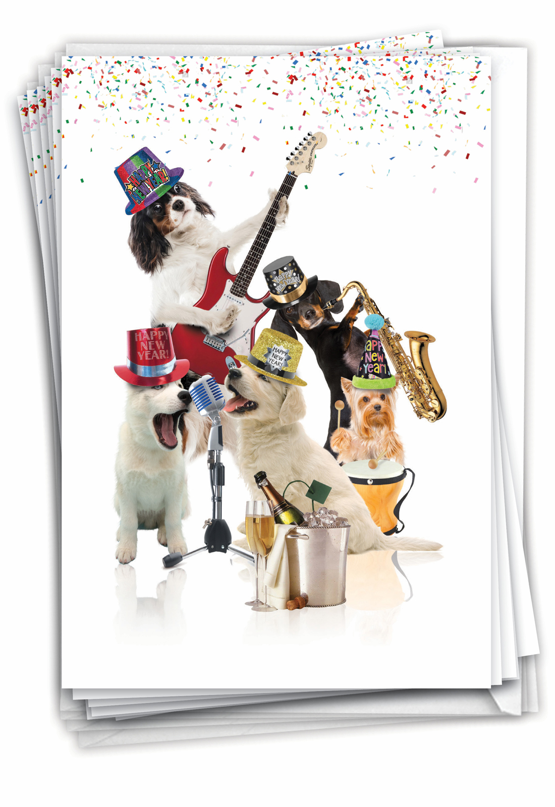 Party Animal Bands-Dogs - Beautiful New Year Box of 12 Cards, Wholesale