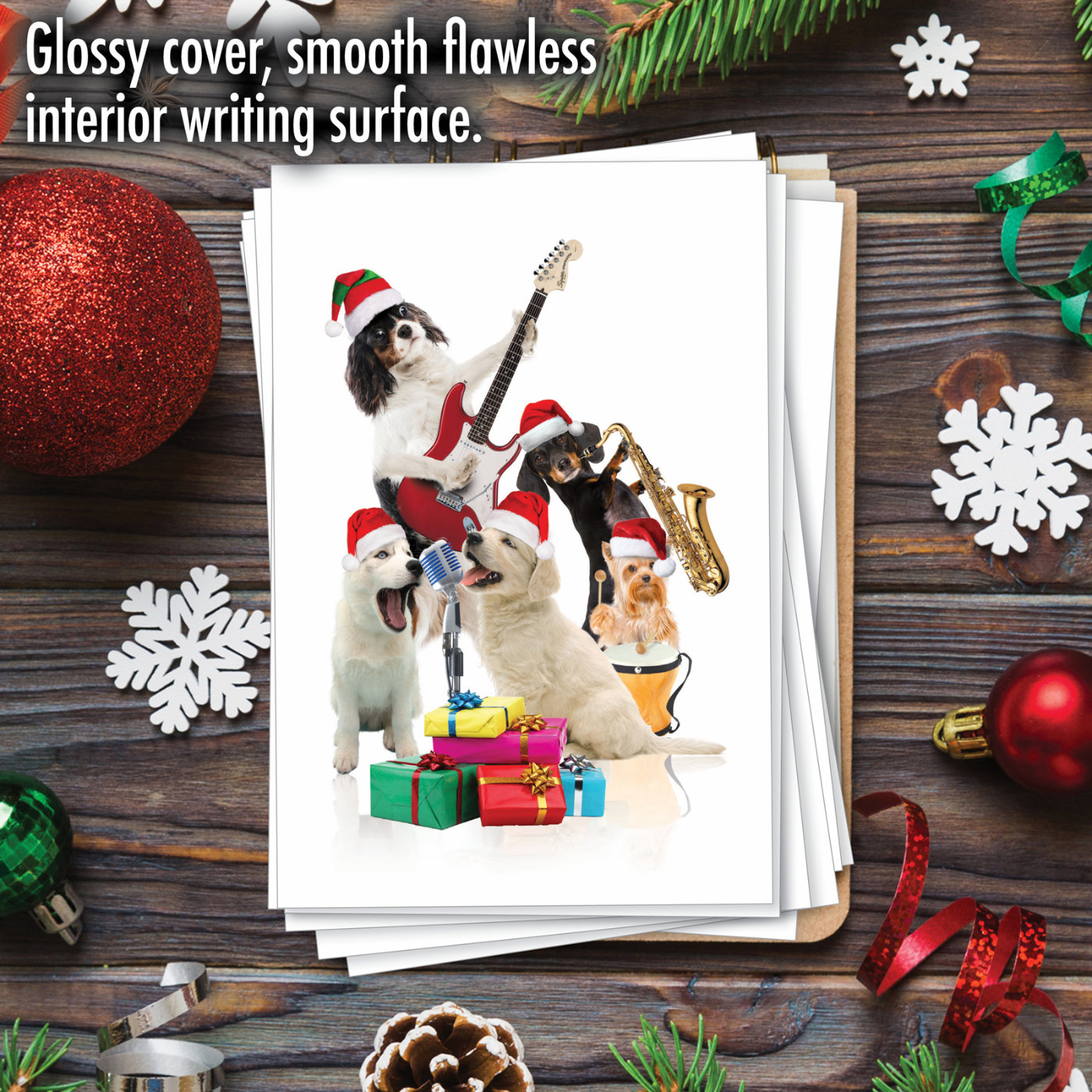 Holiday Animal Bands-Dogs - Stylish Merry Christmas Box of 12 Cards, Wholesale