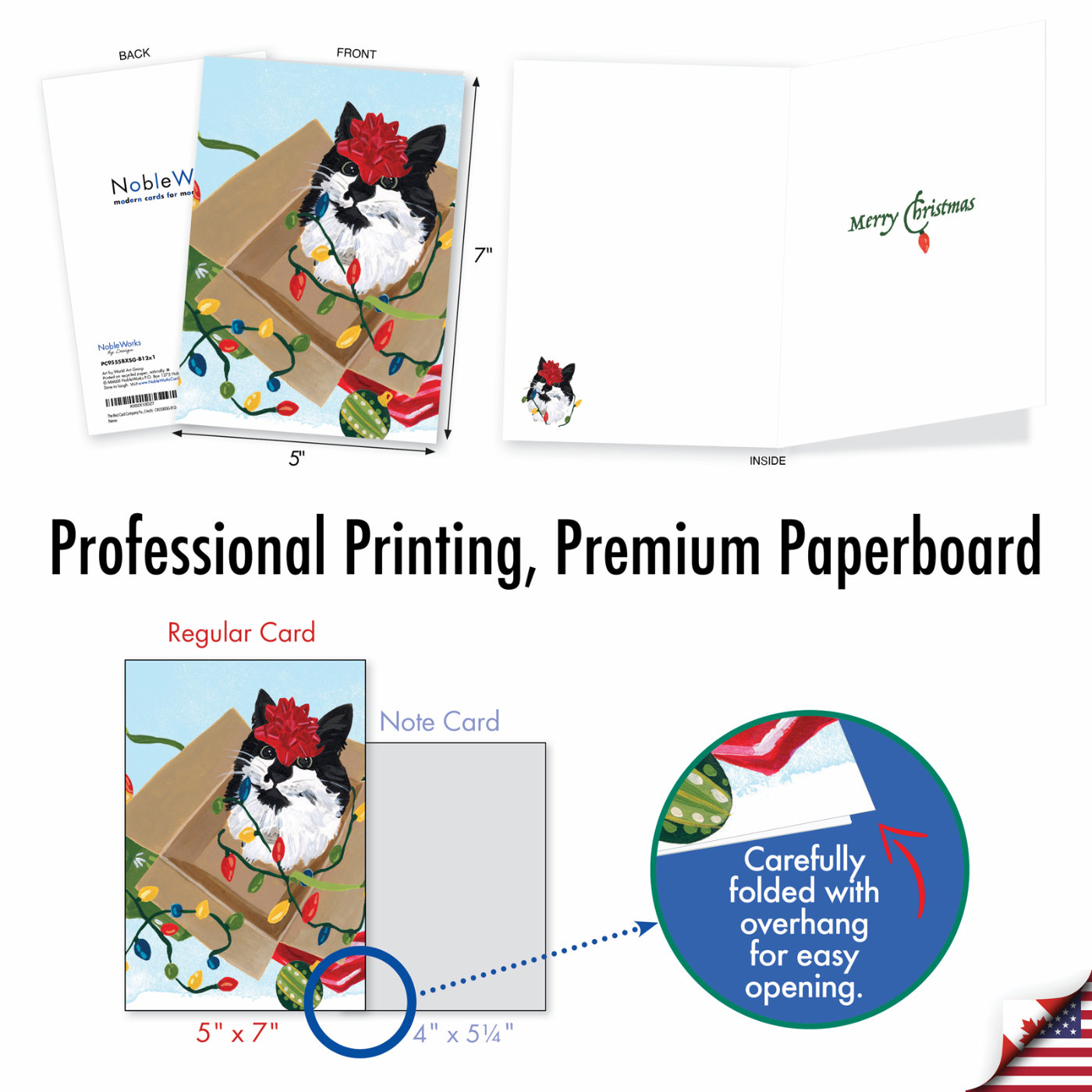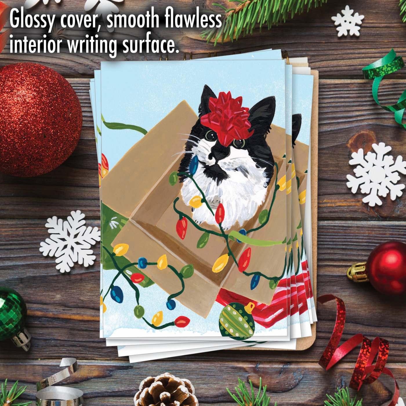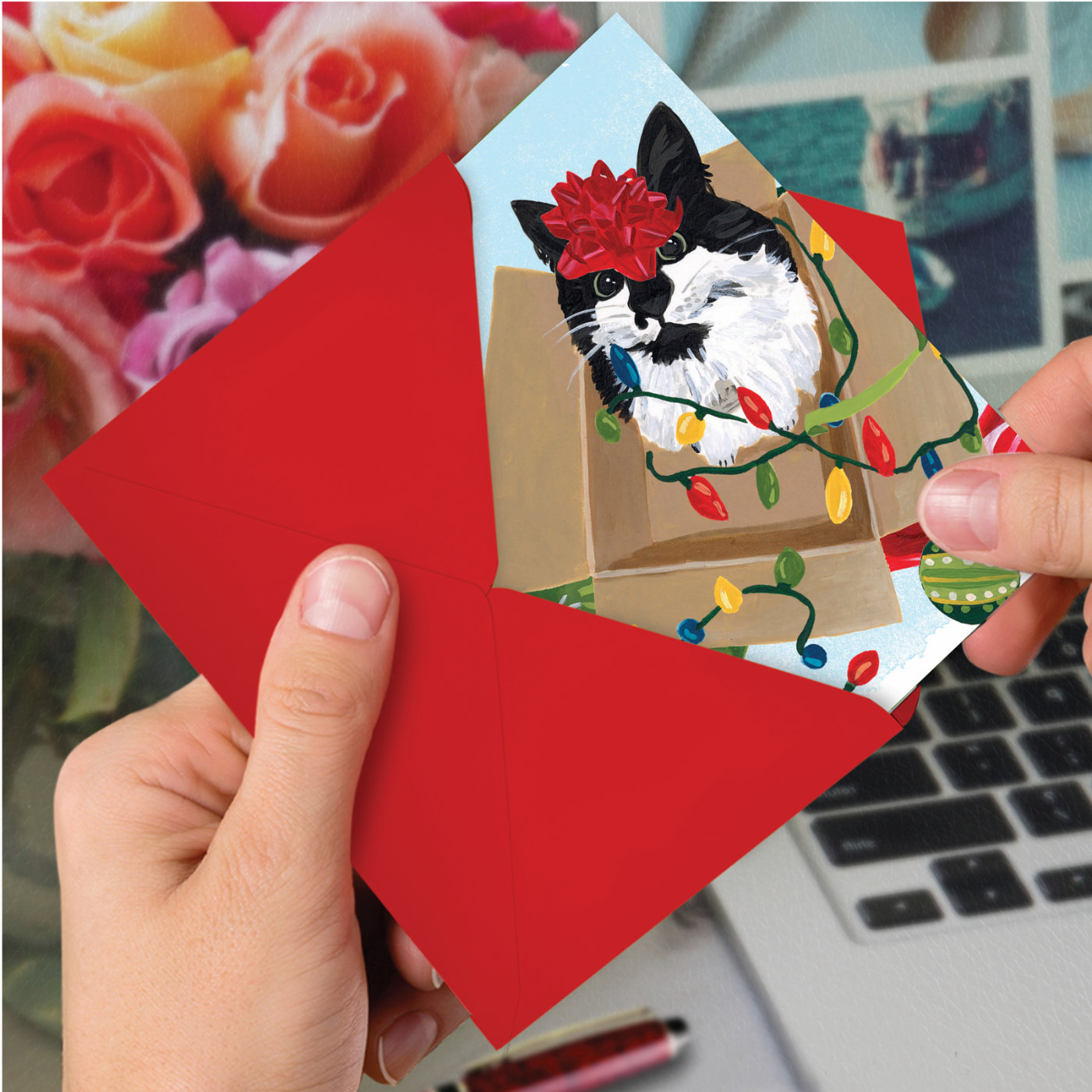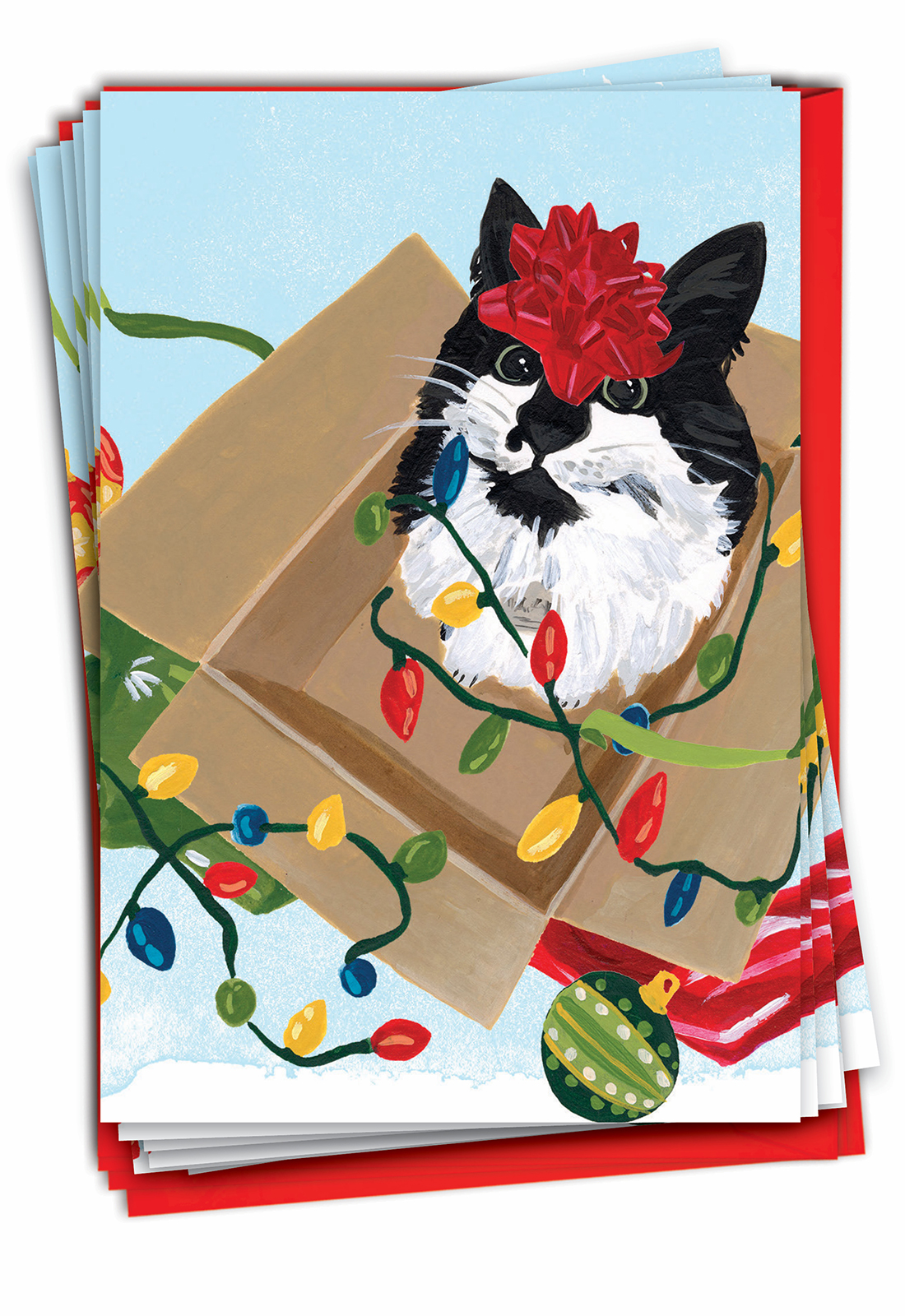 Purr-fect Holiday-Red Bow - Artful Merry Christmas Box of 12 Cards, Wholesale