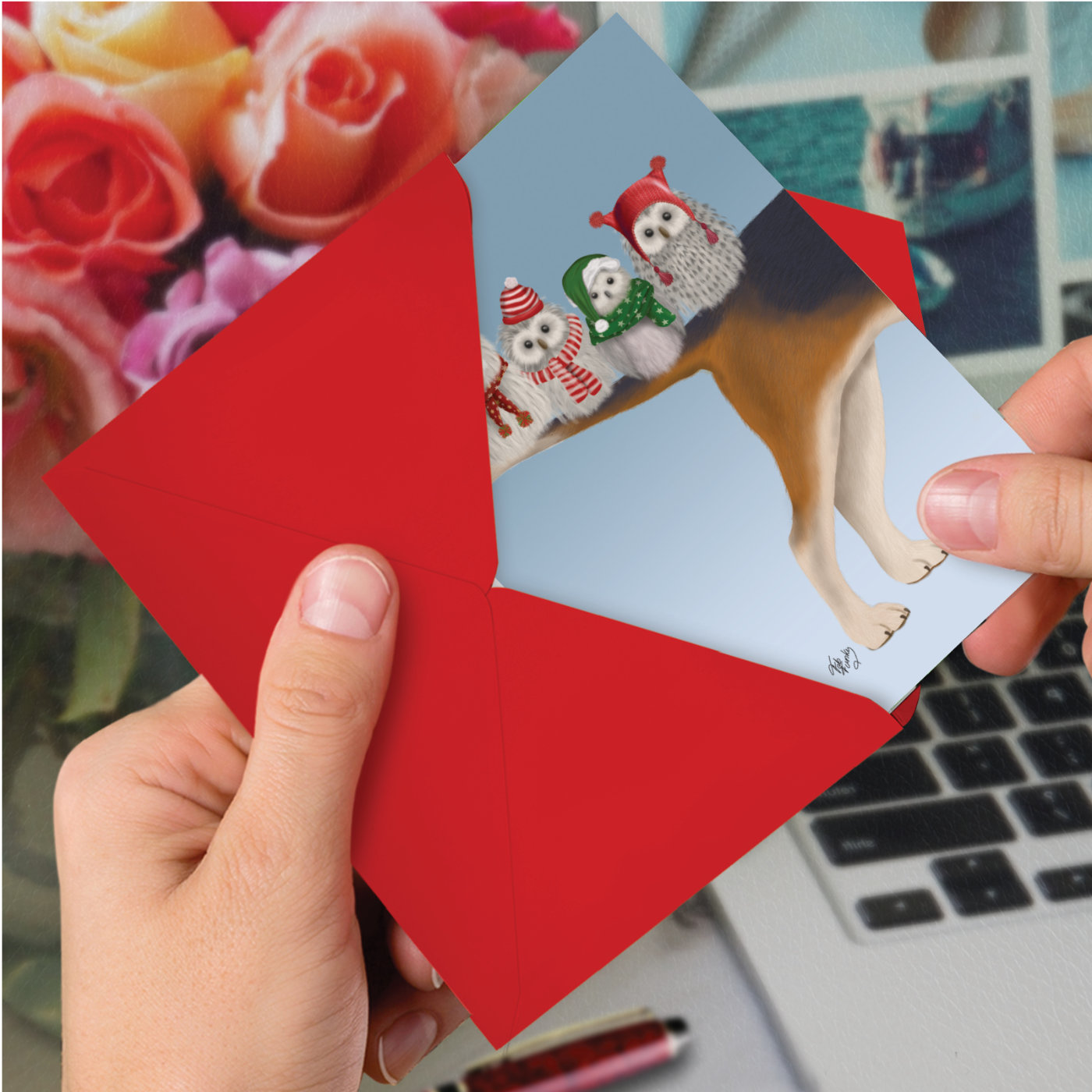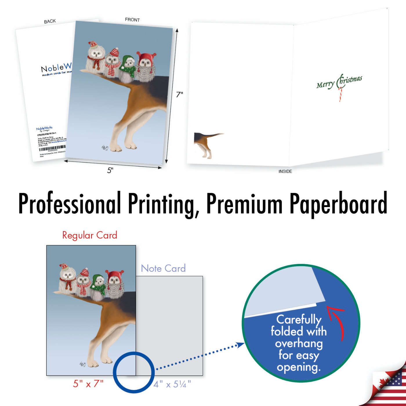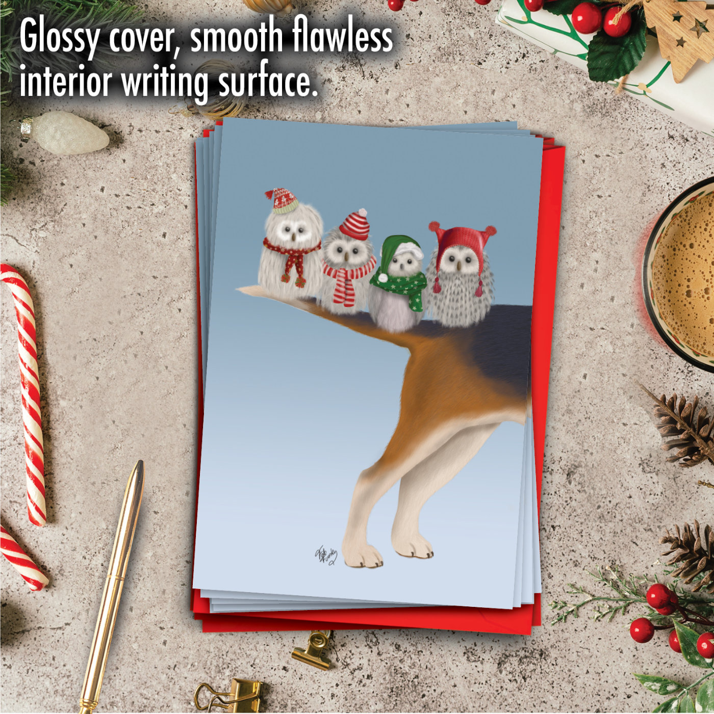 Noel Animals-Owls - Stylish Merry Christmas Box of 12 Cards, Wholesale