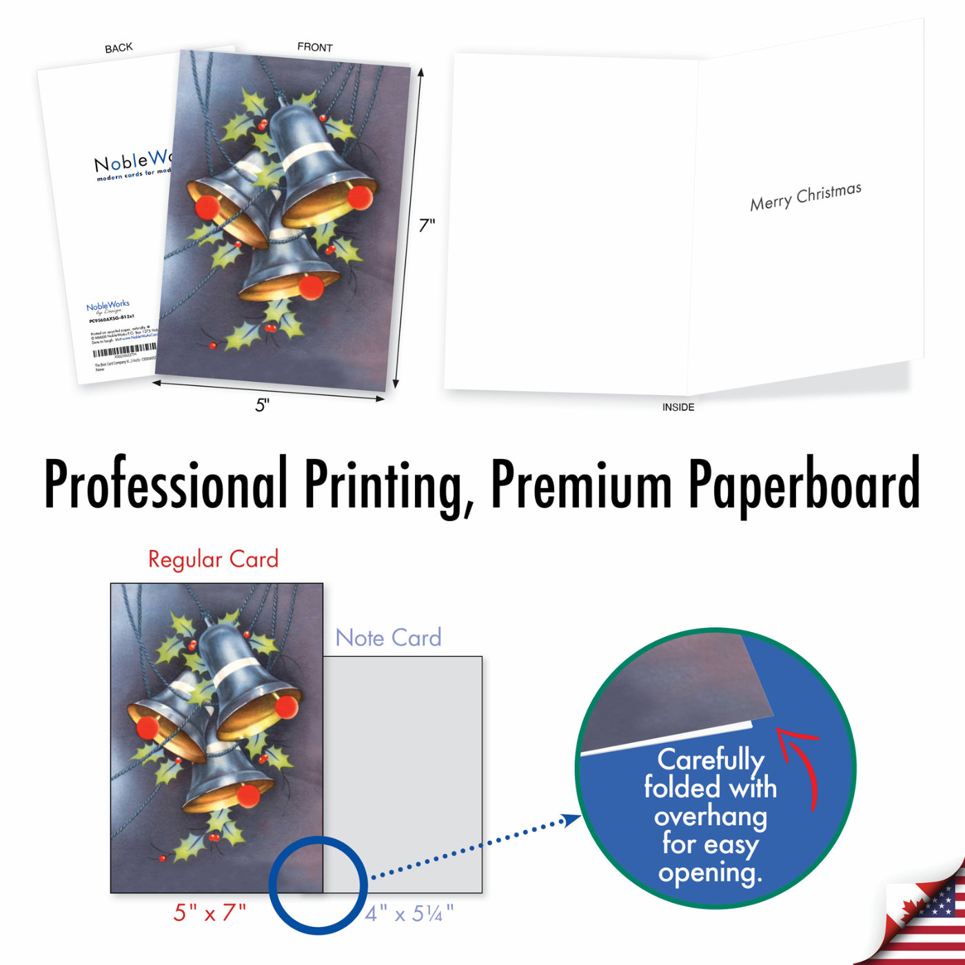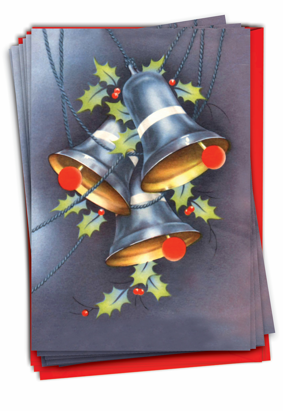 Vintage Bells-Holly - Artful Merry Christmas Box of 12 Cards, Wholesale