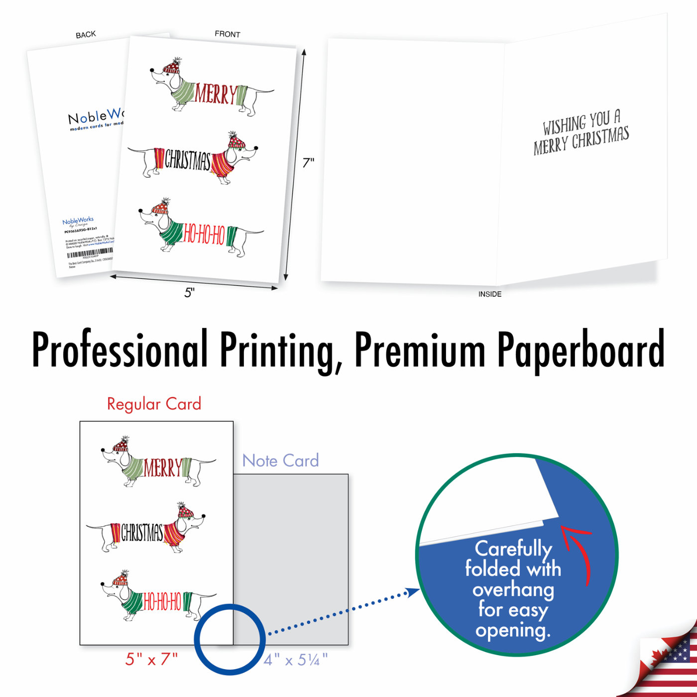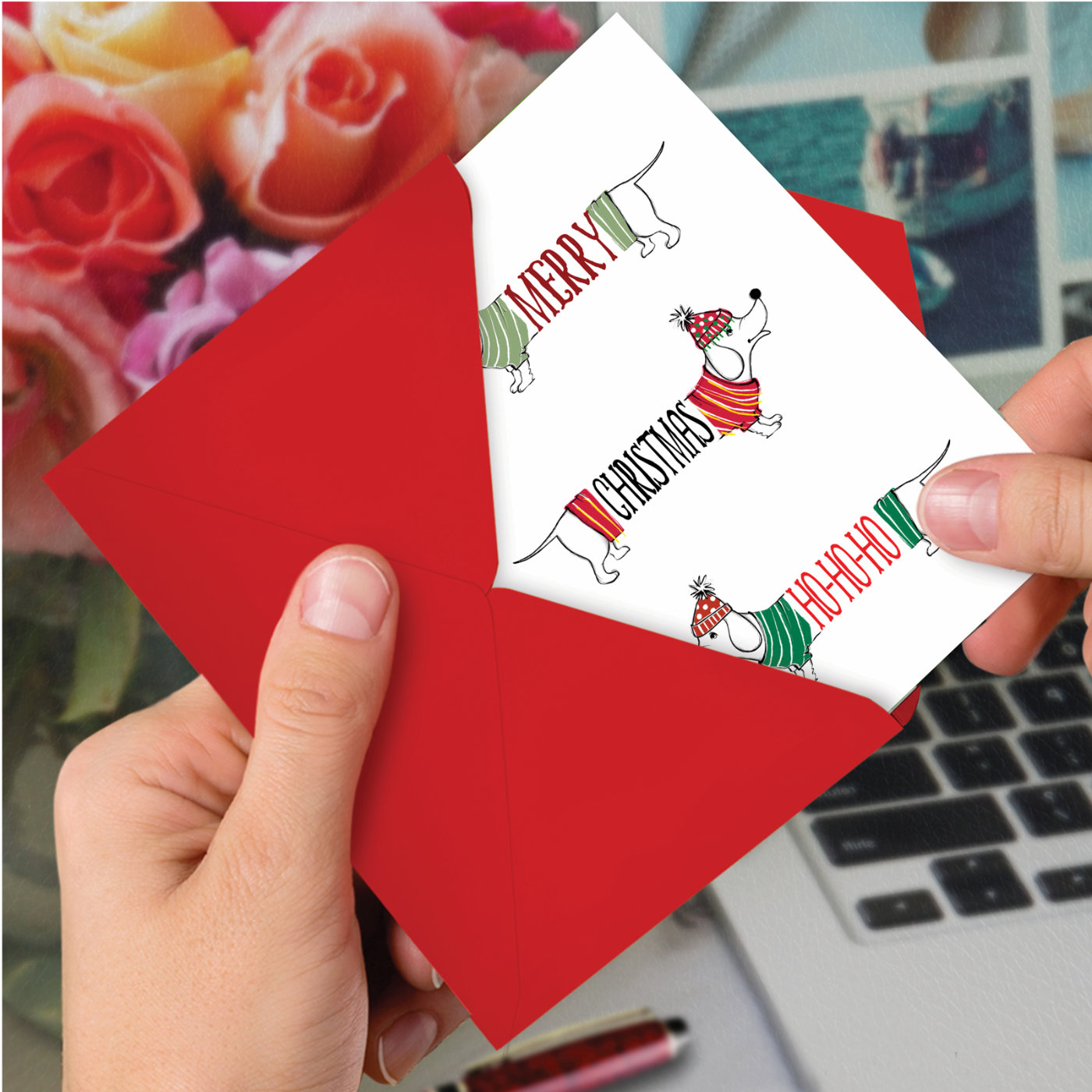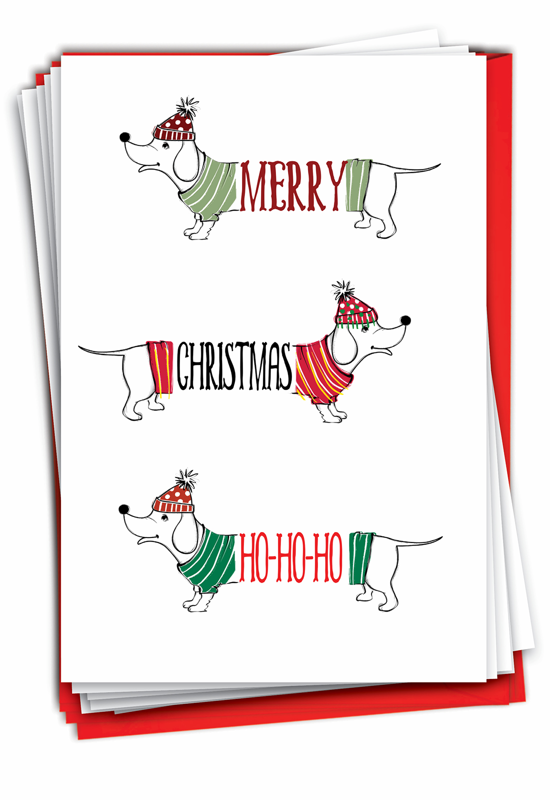 Dashing Dachshunds-Ho Ho Ho - Stylish Merry Christmas Box of 12 Cards, Wholesale