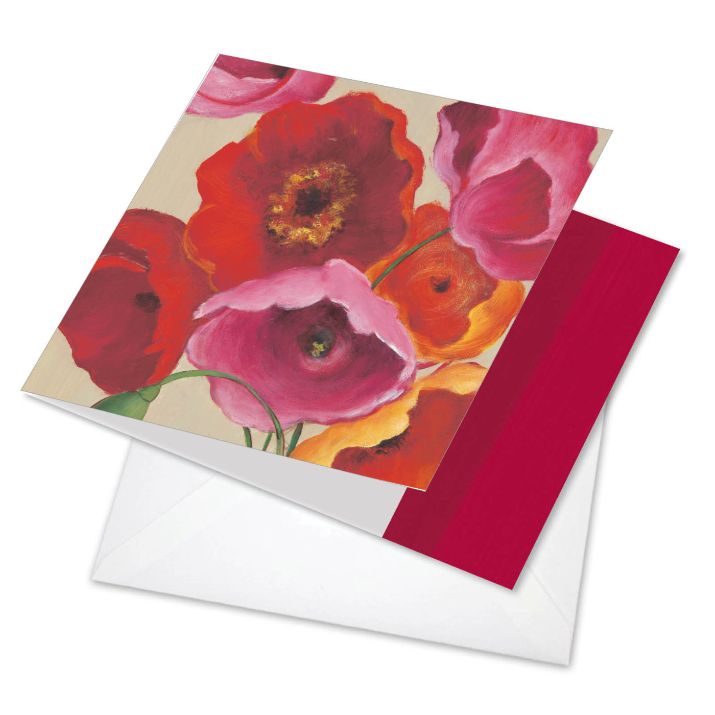 Painted Poppies - Artistic Thank You Square-Top Card, Wholesale