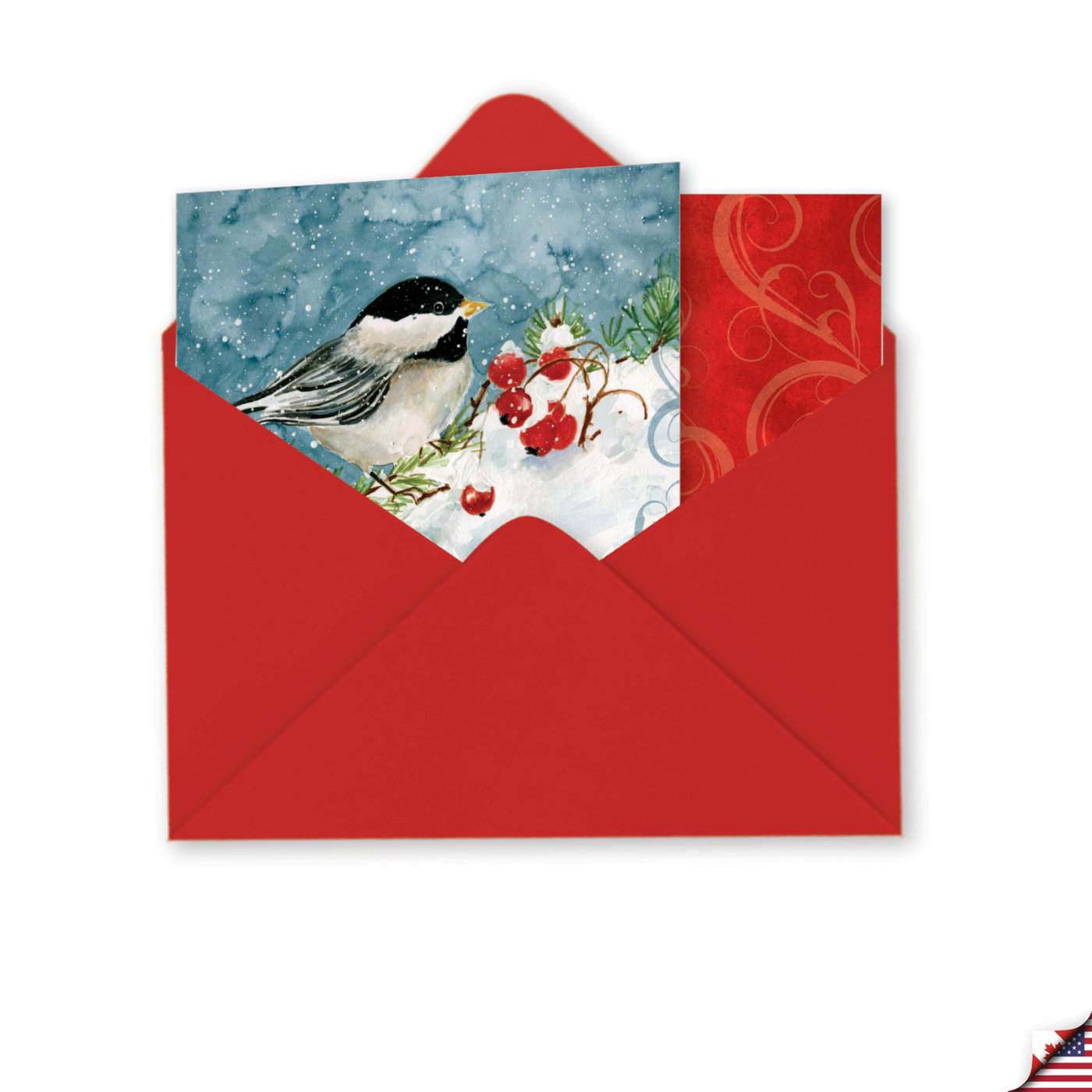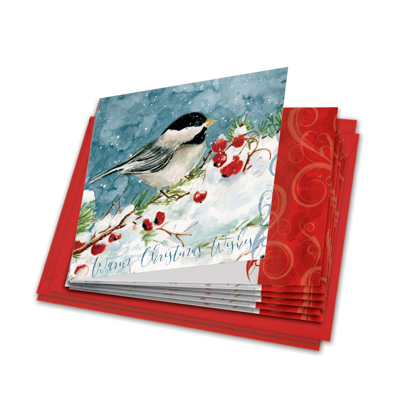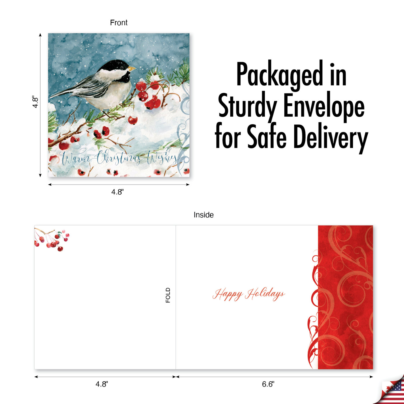 Season's Tweets - Artful Happy Holidays Square-Top Card, Wholesale