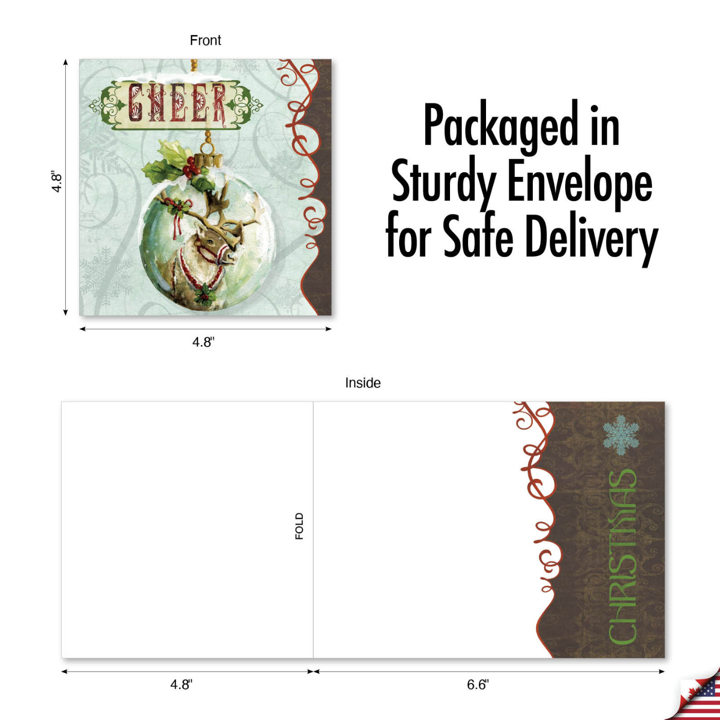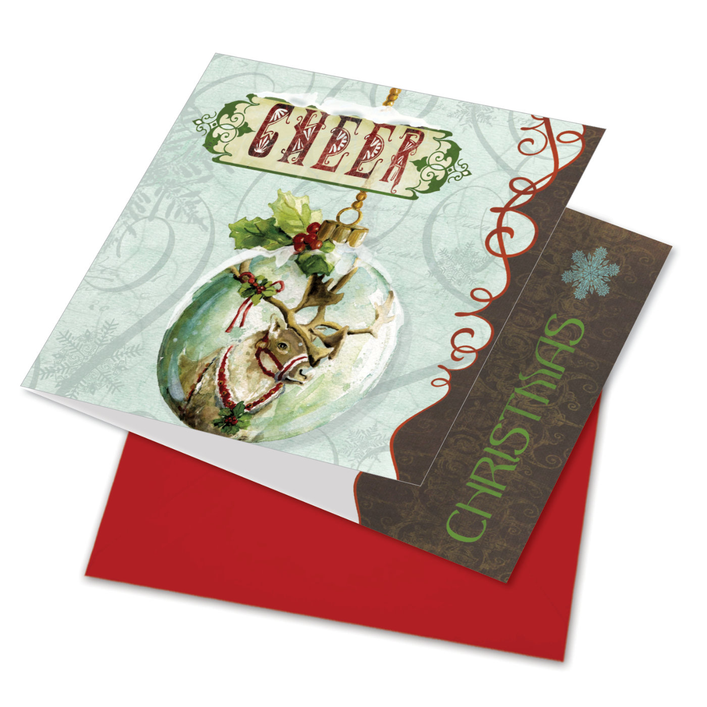 Deer and Cheer - Cheer - Beautiful Blank Merry Christmas Square-Top Card, Wholesale