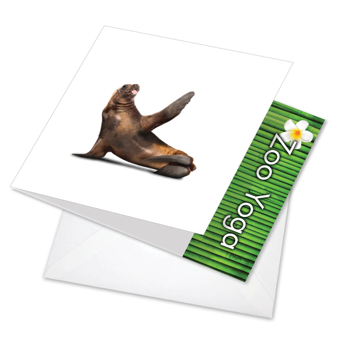 Zoo Yoga - Seal - Beautiful Blank Square-Top Card, Wholesale